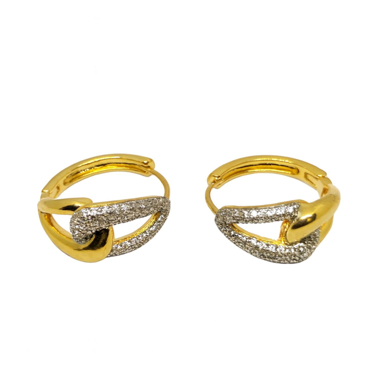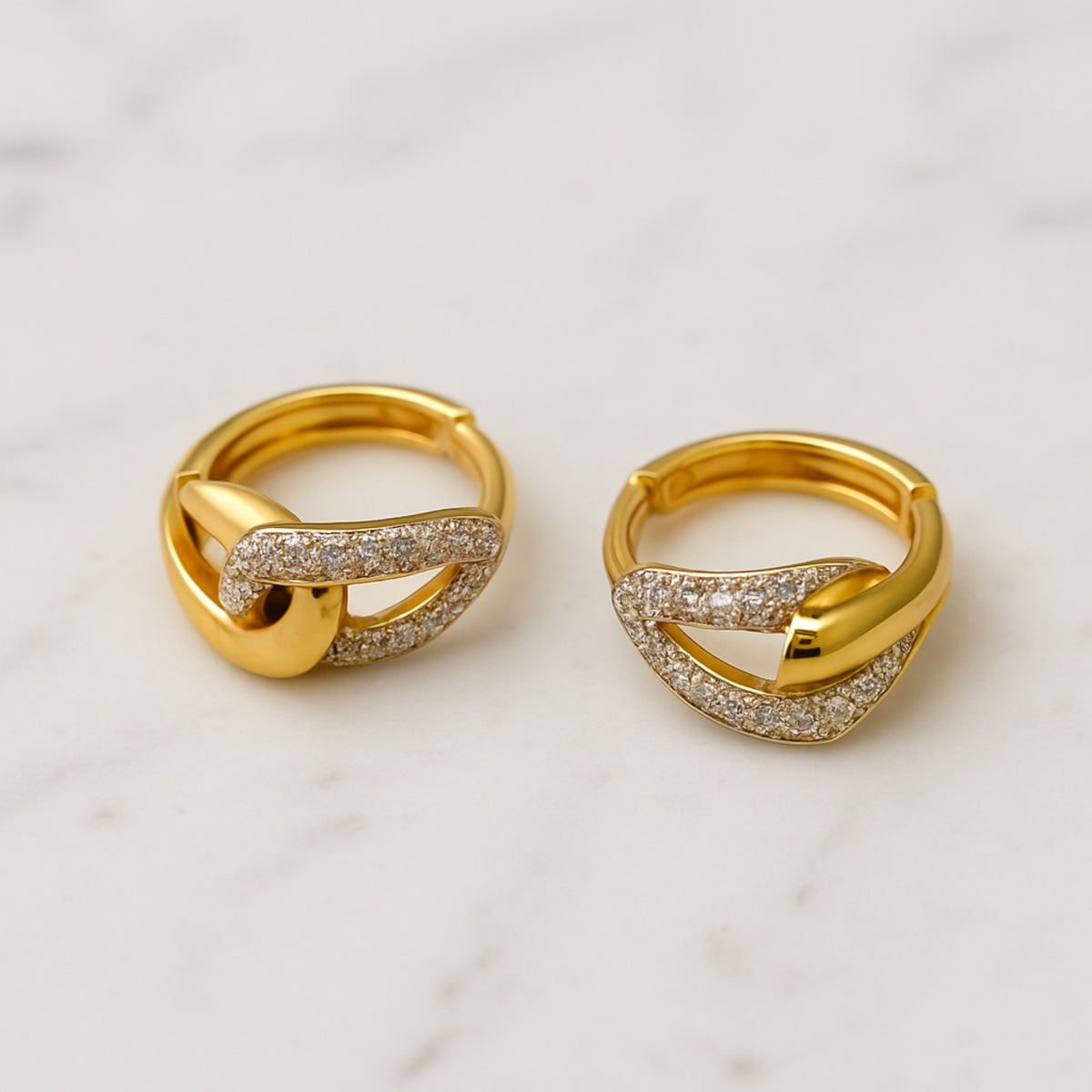 Women’s Interlocking Knot Huggie Hoop Earrings – Gold & Silver-Tone with Pavé Sparkle, Lightweight Small Hoops with Secure Latch-Back for Daily & Party Wear