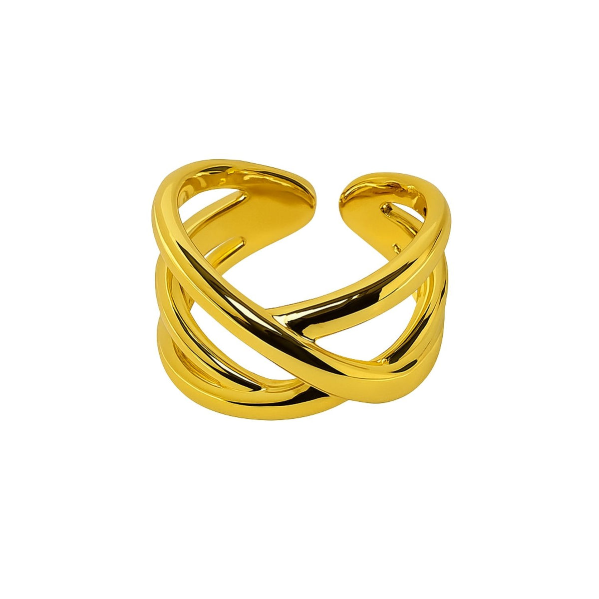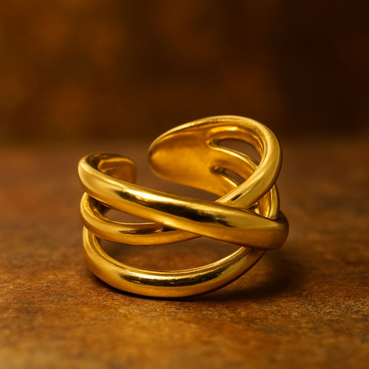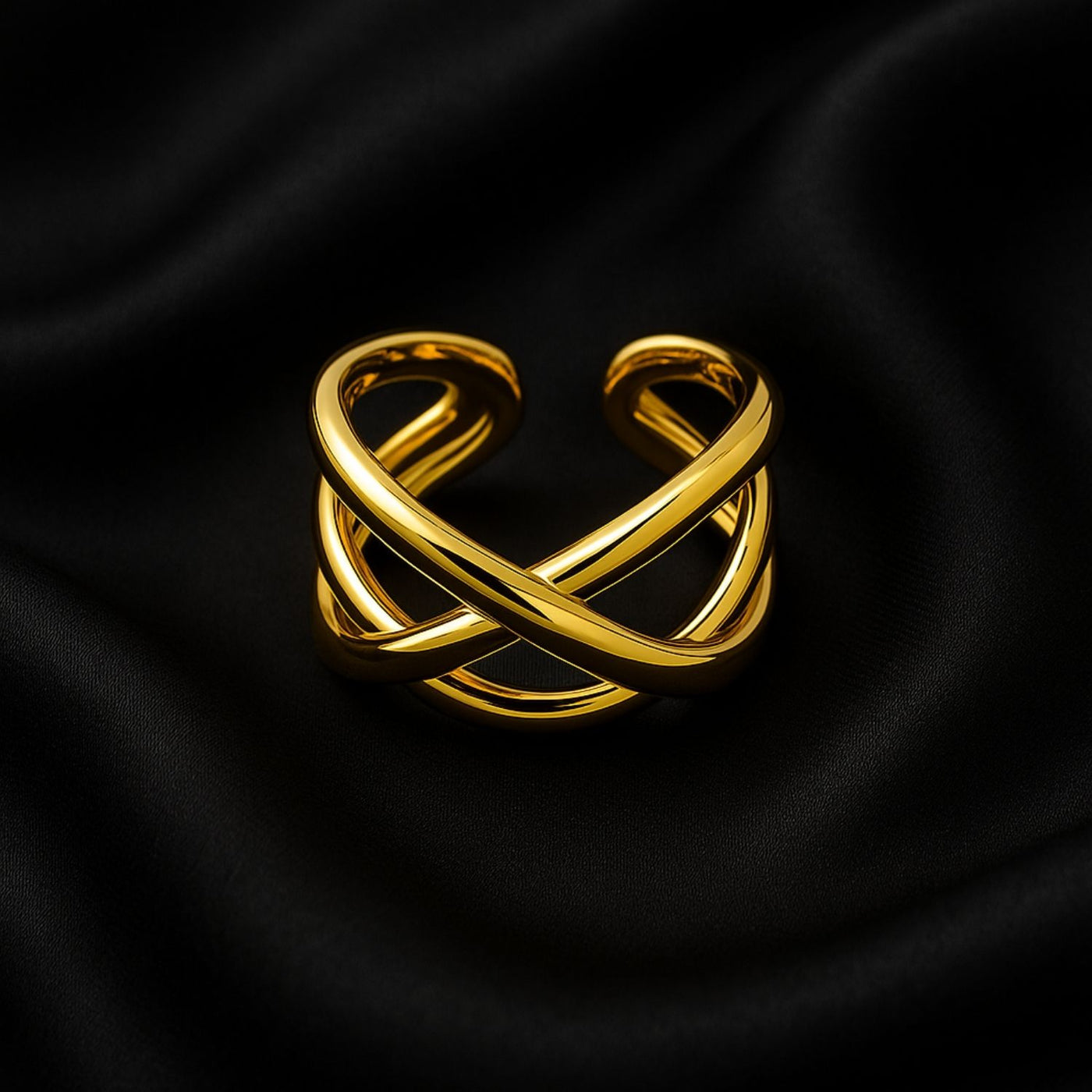 Make a powerful impression with this bold Adjustable gold crossover ring — a sleek, sculptural piece designed for confidence and style.