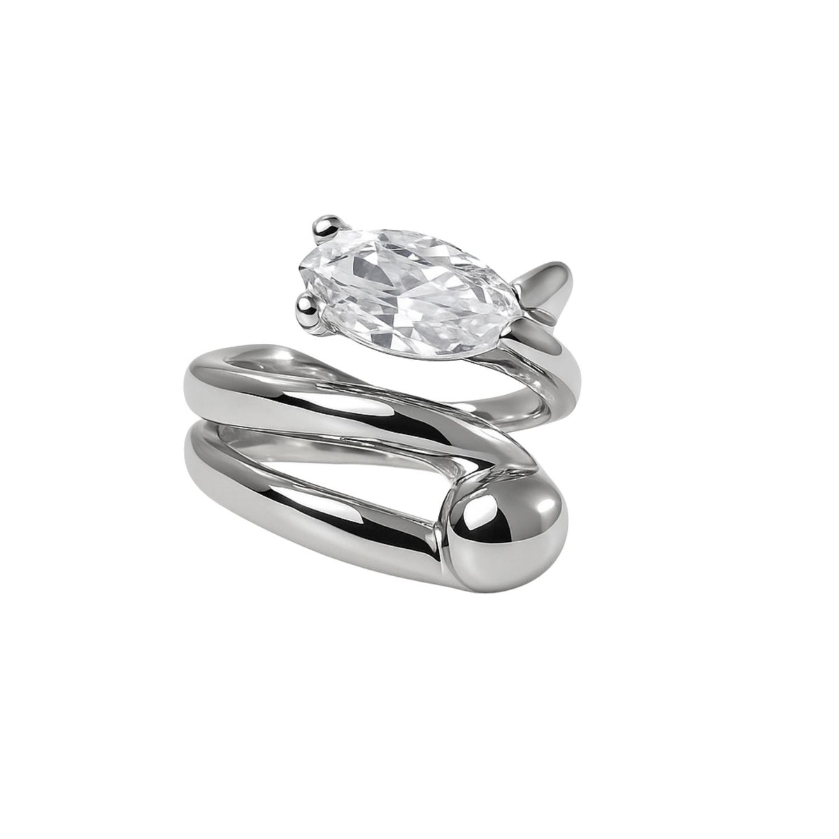 Silver Marquise Solitaire Ring – Twisted Adjustable Band Statement Ring for Women & Girls