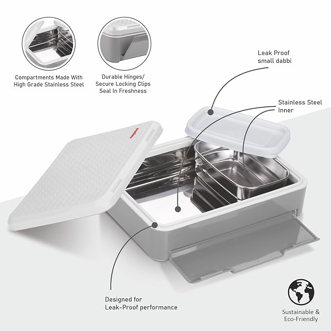 Compact and Lightweight: The sleek design of the tiffin makes it easy to fit in a bag without occupying much space and ensures it remains lightweight. It is simple to store, clean, and maintain. Perfect for carrying to the college, school, or while traveling, and picnic.