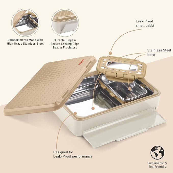 Secure Closure:- The Snap-lock lid ensures that the tiffin box remains tightly sealed, preventing leaks and spills. This is especially useful for carrying liquids or saucy dishes.