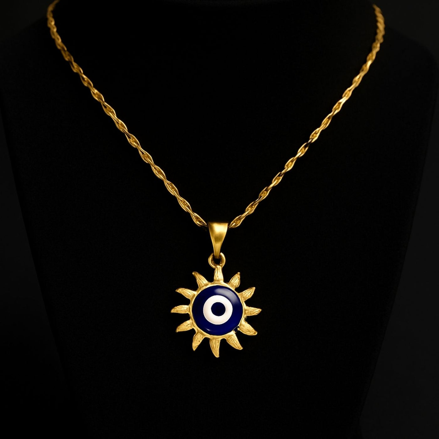 Inform when this item available Evil Eye Sun Charm Pendant – Gold-Plated Necklace