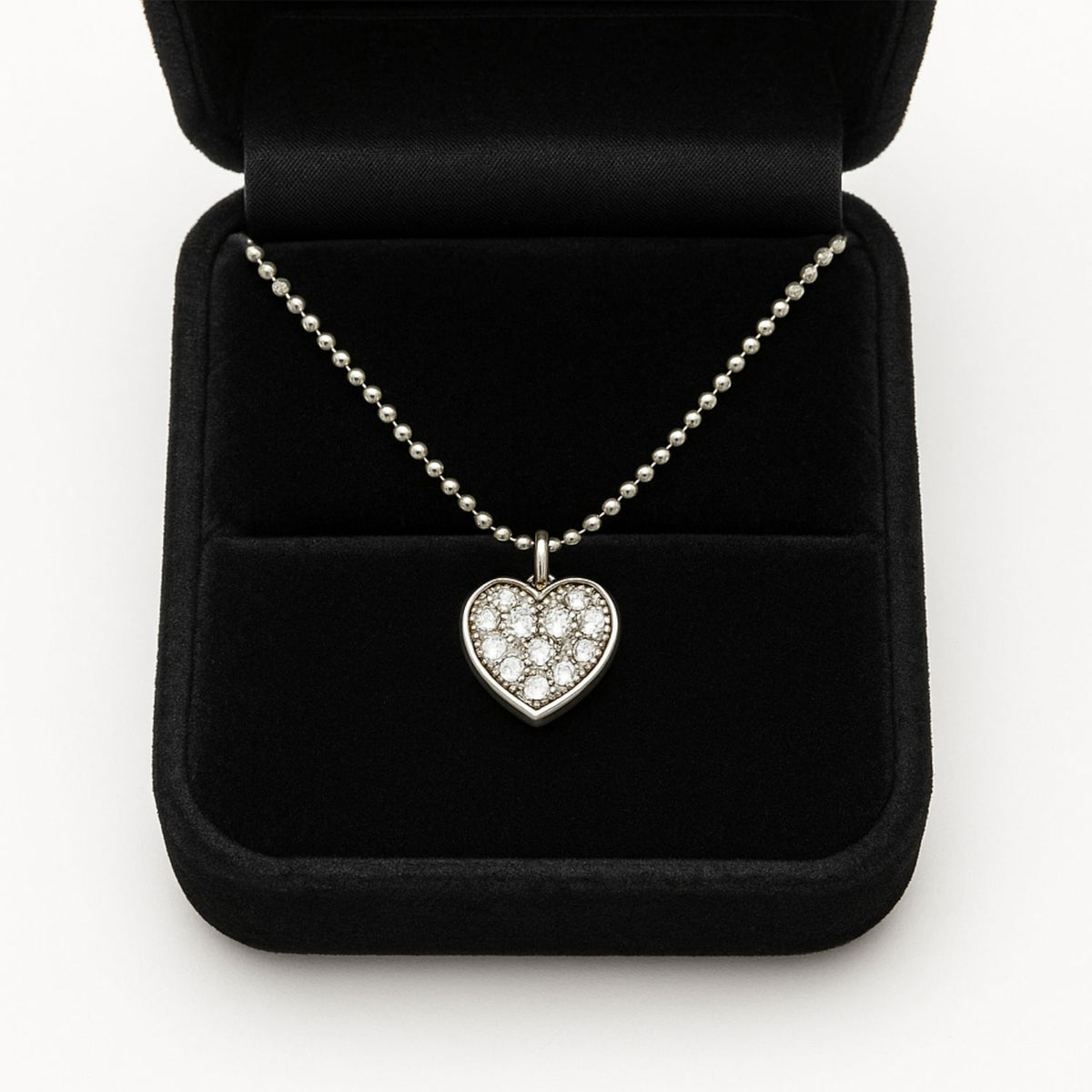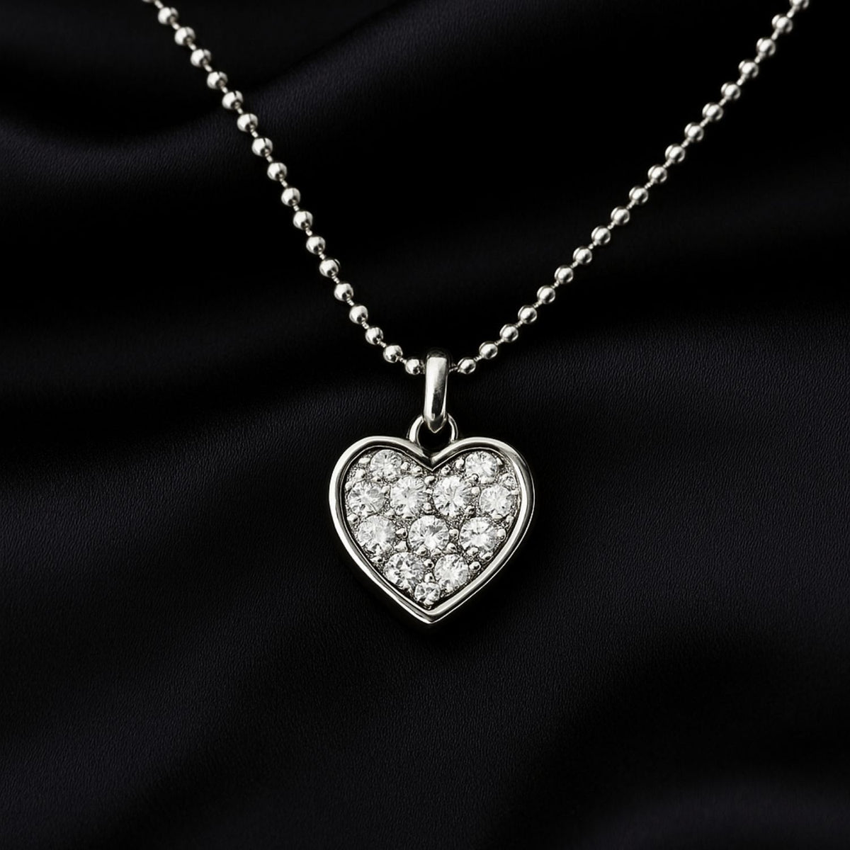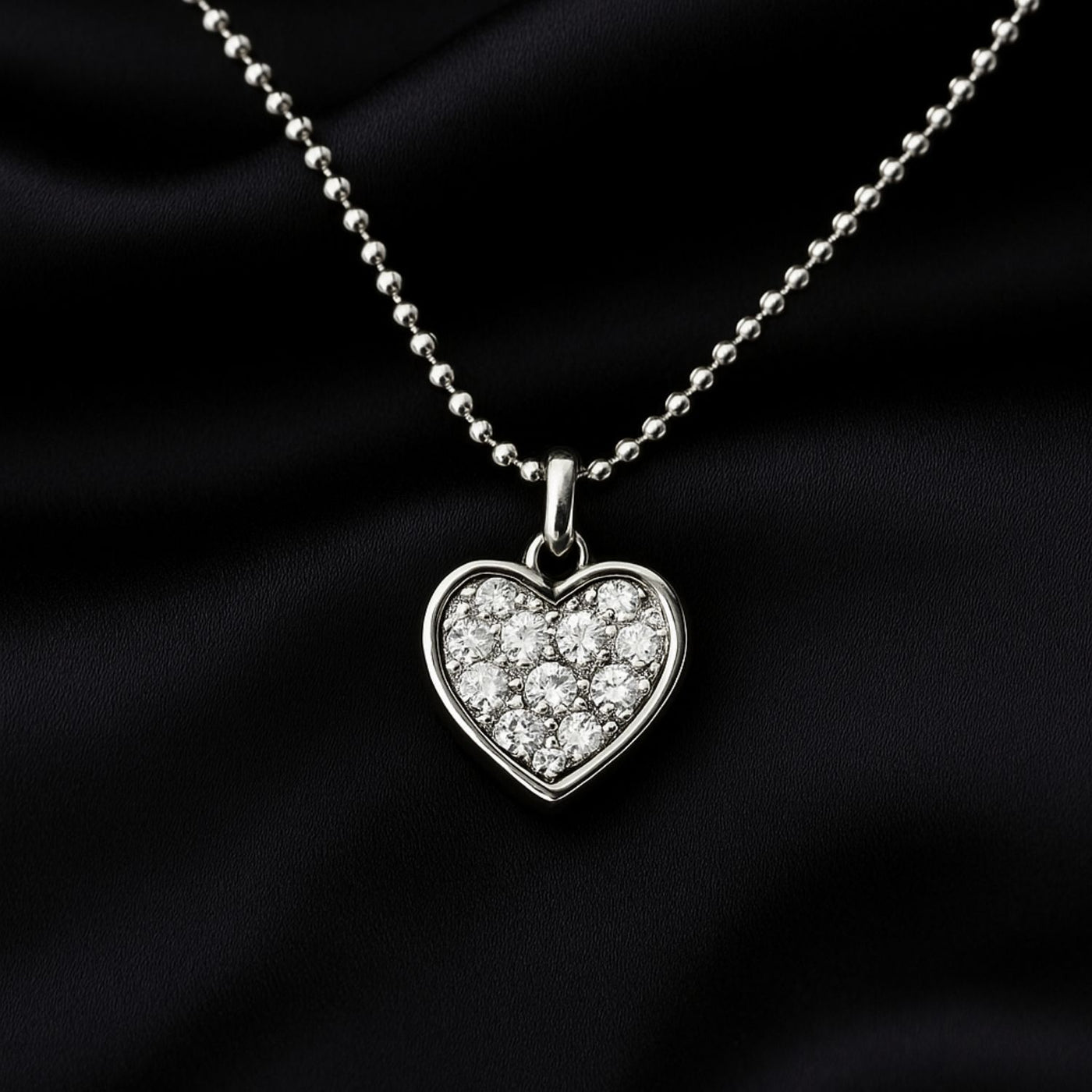 Dainty heart pendant in silver tone, encrusted with shimmering crystals — perfect for daily elegance or heartfelt gifting.