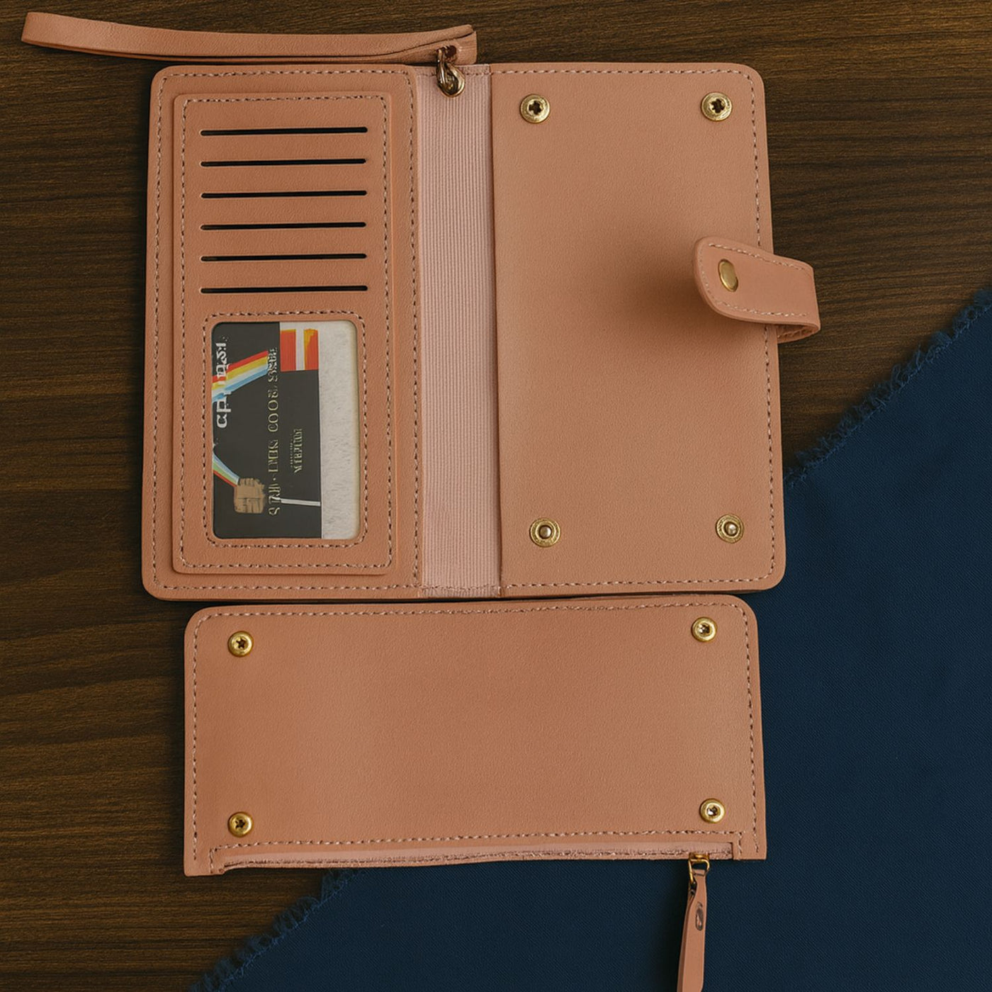 Stay organized without the bulk. This peach-pink women’s long wallet pairs a clean butterfly design with practical storage. Inside, a removable zip compartment snaps in/out in seconds—perfect when you want to travel light. You also get 12+ card slots, a clear ID window, full-length bill sections, and a smooth zip pocket for coins. The strap-snap closure secures everything, while the structured build and sturdy hardware help the wallet hold its shape. Soft PU leather delivers a comfortable, easy-wipe finish. Sleek, functional, and versatile for everyday carry or gifting.
