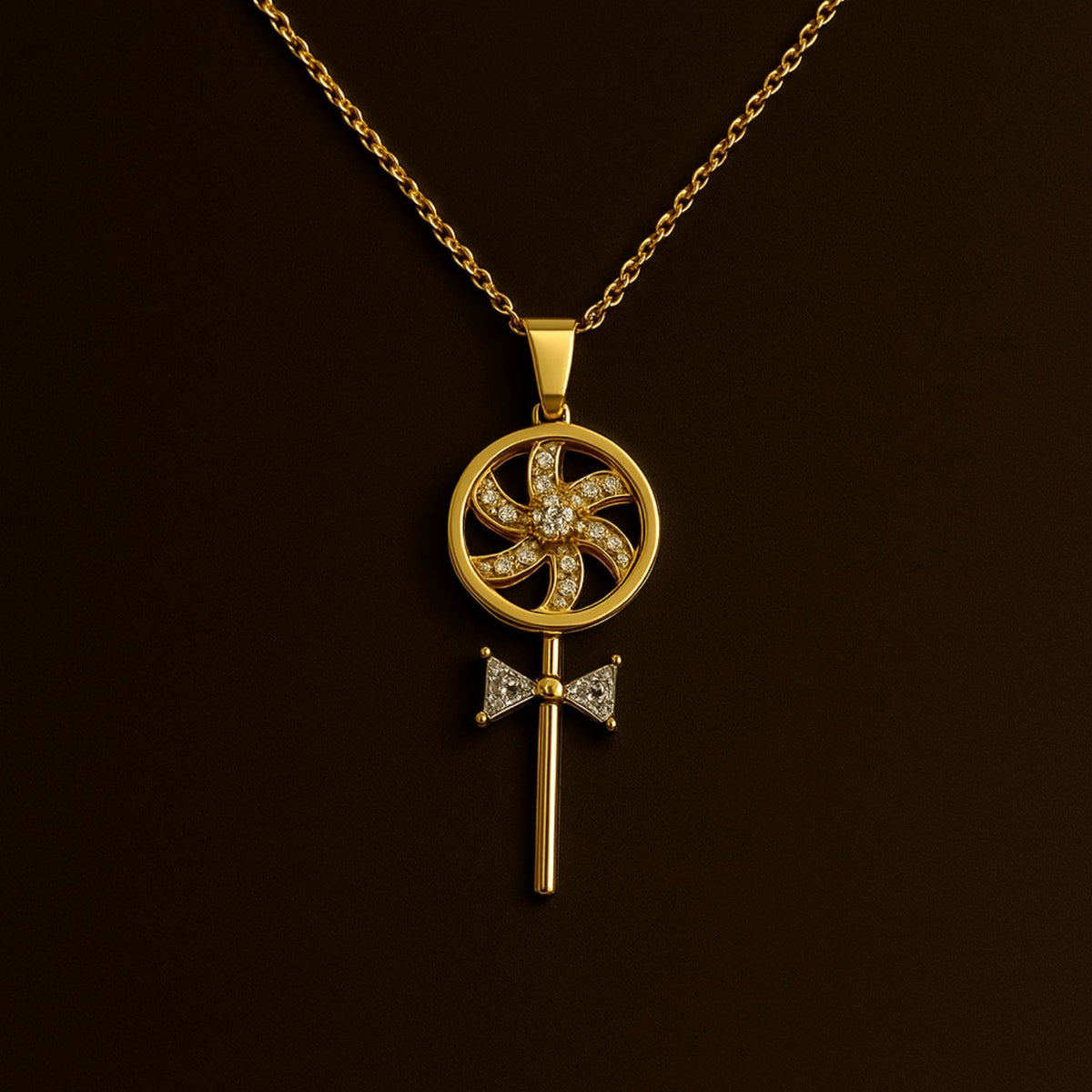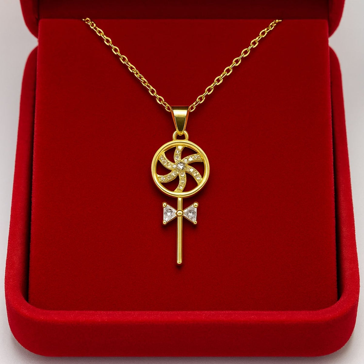 Add a playful sparkle to your neckline with this unique key-shaped gold pendant. Accented with shimmering crystals and a dainty bow detail, it’s a chic accessory for modern women and girls.