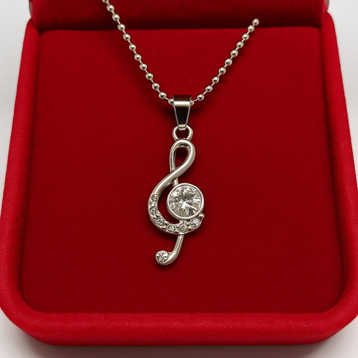 Inform when this item available Melody in Silver – Crystal Treble Clef Pendant