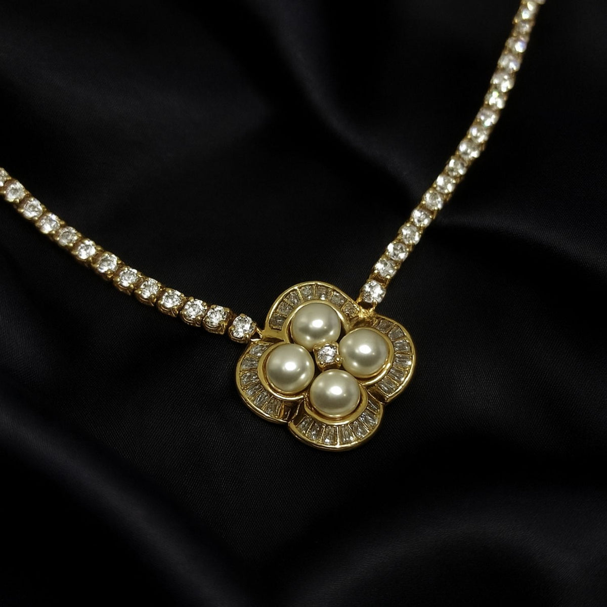 Inform when this item available Premium Pearl Blossom Pendant – Gold Plated Necklace with Crystal Chain
